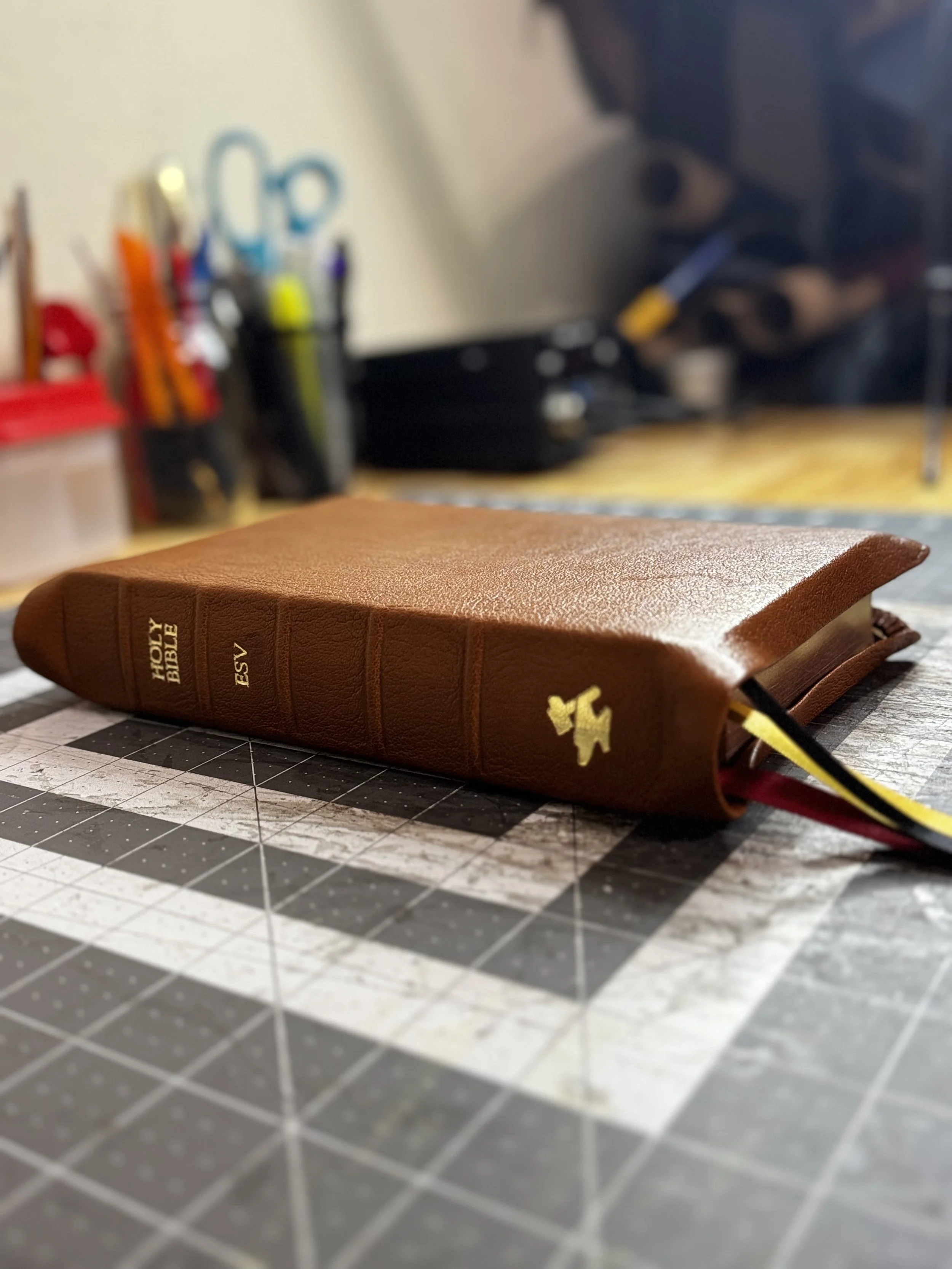 At Foundry Bibles, my mission is to glorify God through the craftsmanship of Bible rebinding. By carefully crafting Bibles with quality leather, I seek to provide people with a Bible they will love to read for many years!