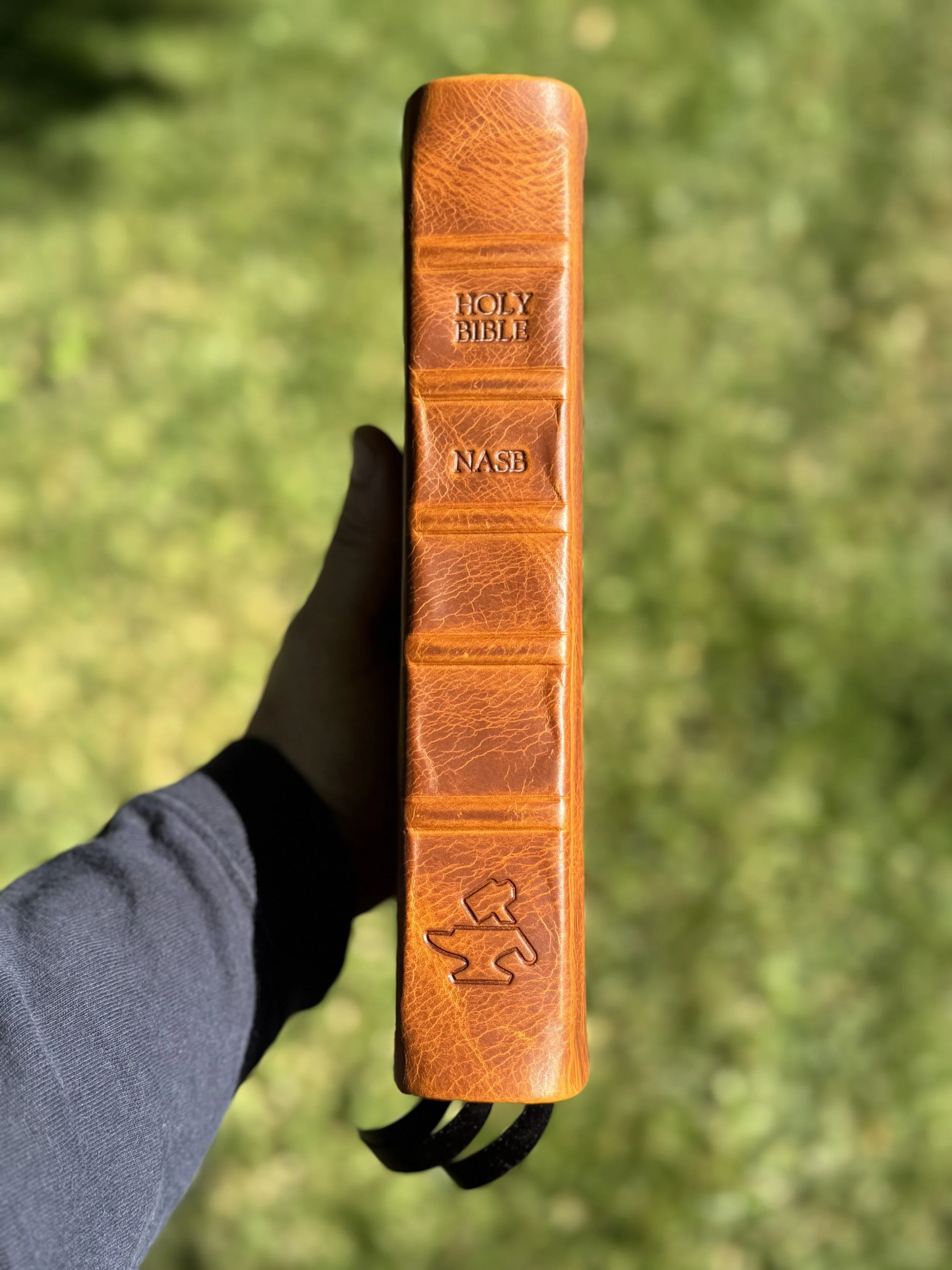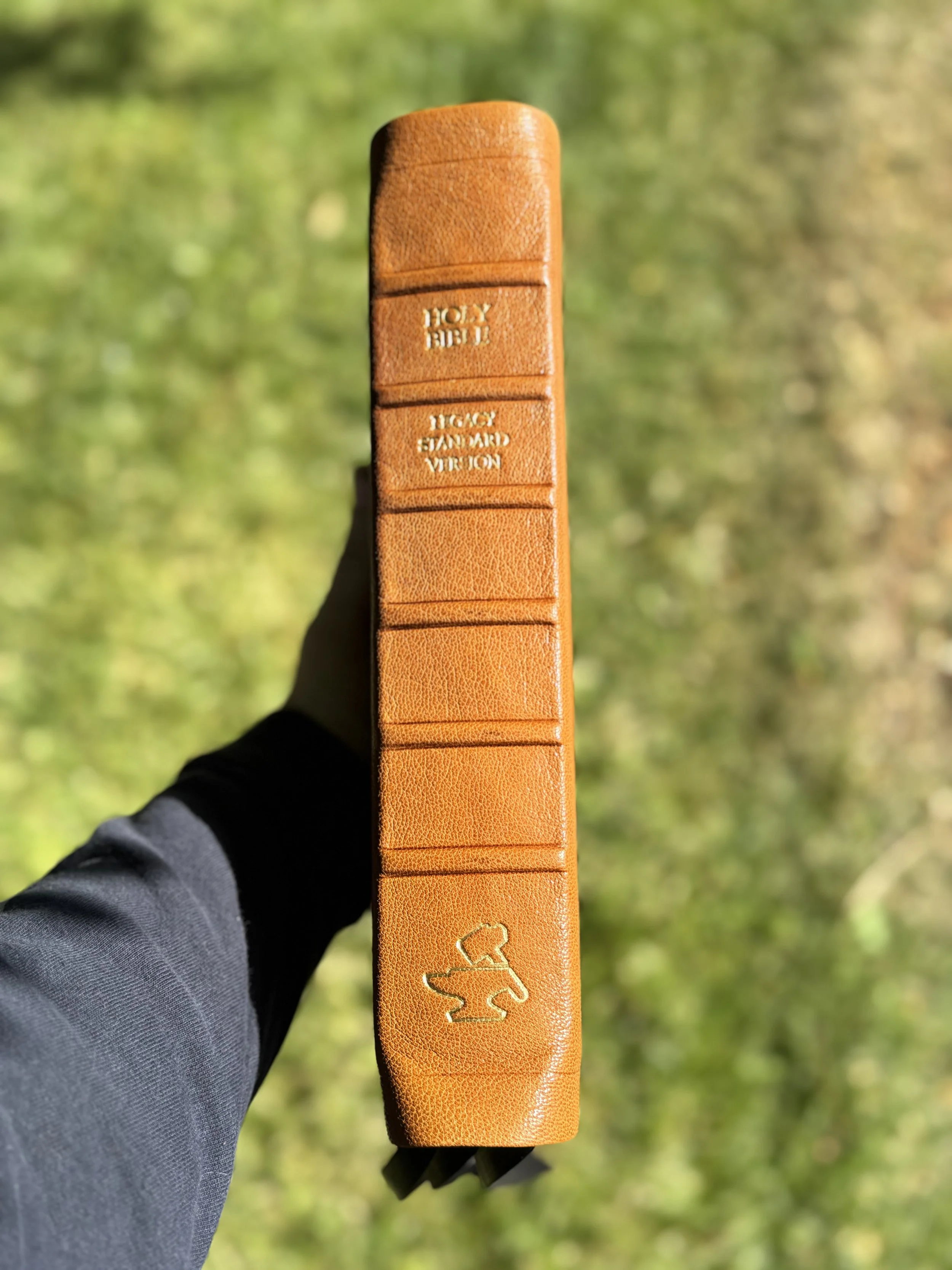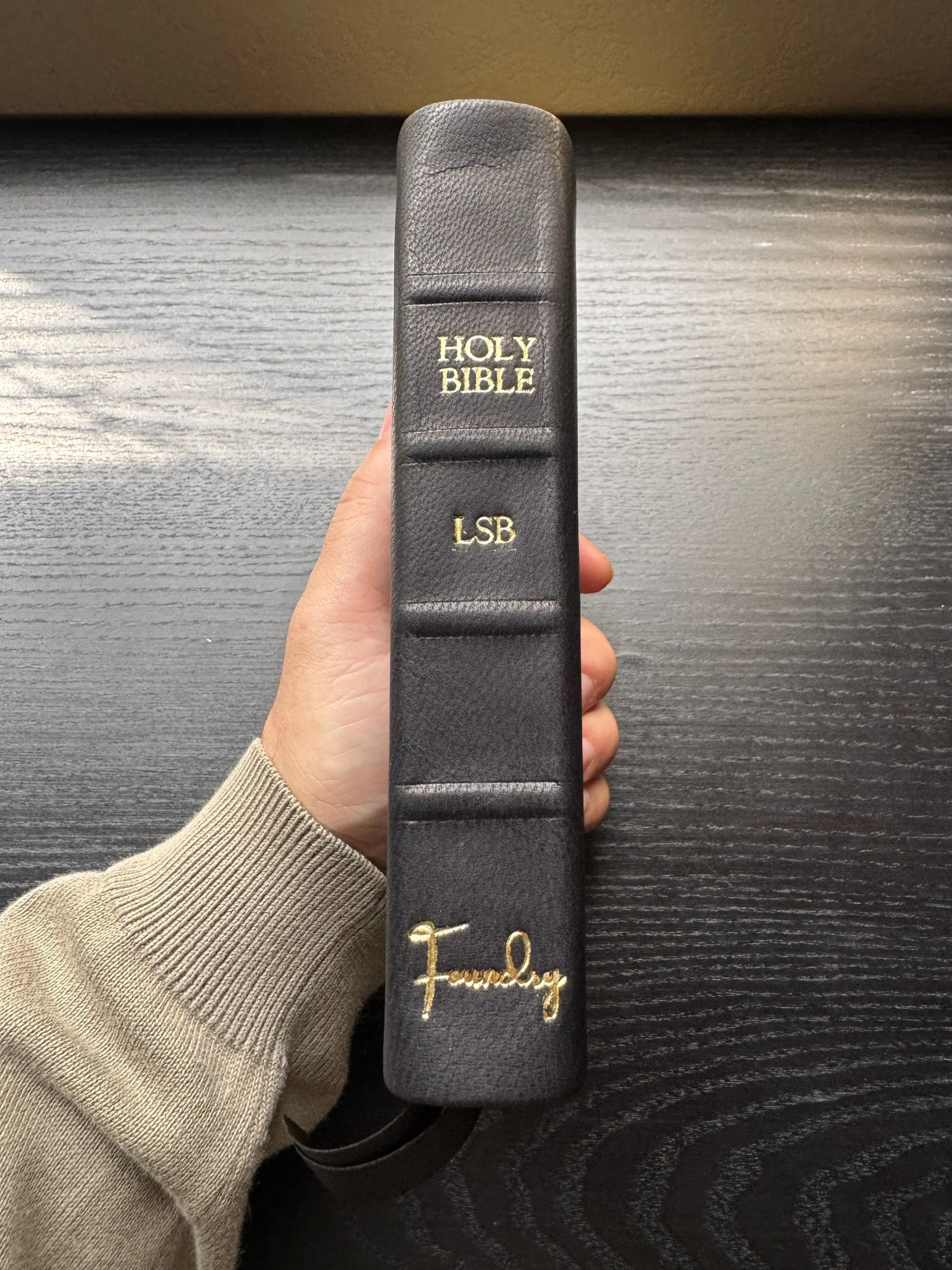 Every Bible comes with this stamping, Holy Bible, Translation (ESV,LSB,etc.), and Foundry Logo. You can either choose gold foil, or you can choose blind stamping which is no foil. Gold foil is standard. *If you want blind stamping, please make a note of it in the comments section in the custom rebind form.