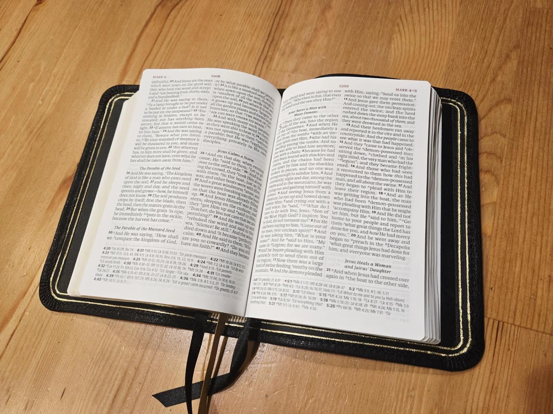 Every Bible comes with a Single Gold Gilt Line. This adds a beautiful accent of gold in the inside of the Bible.